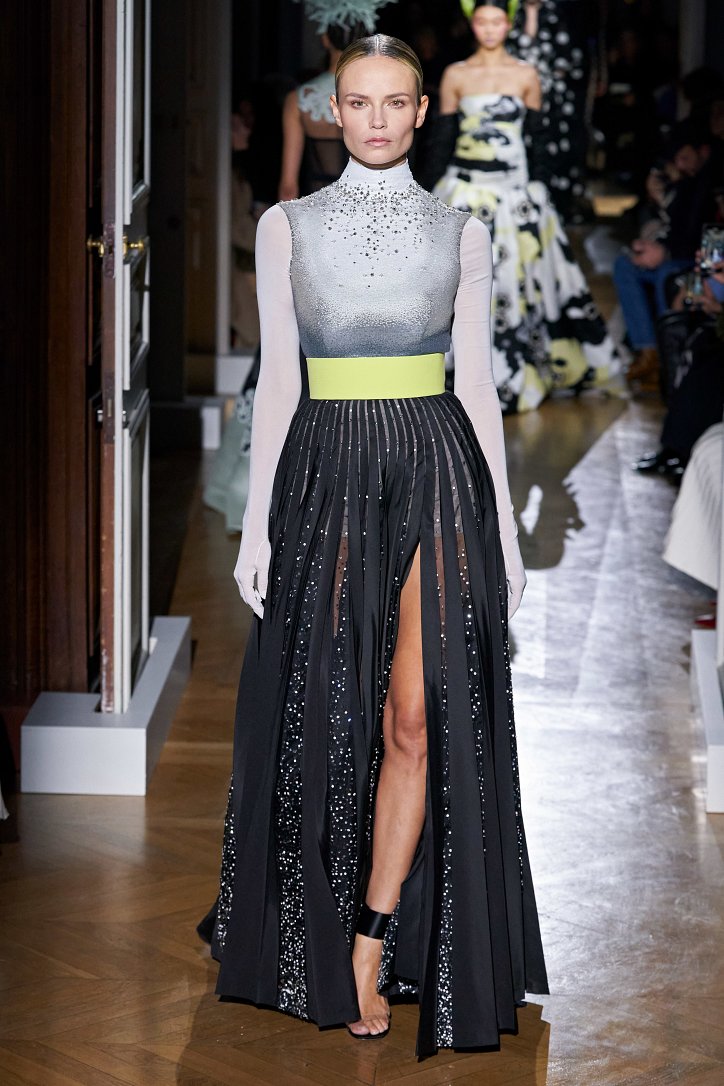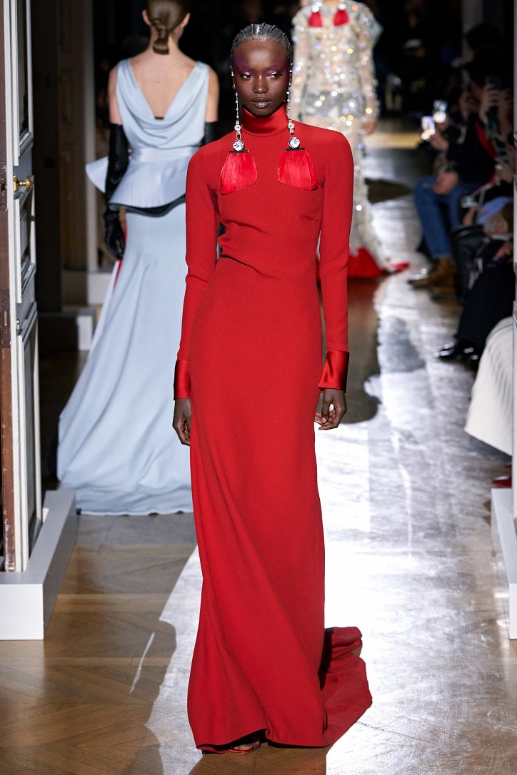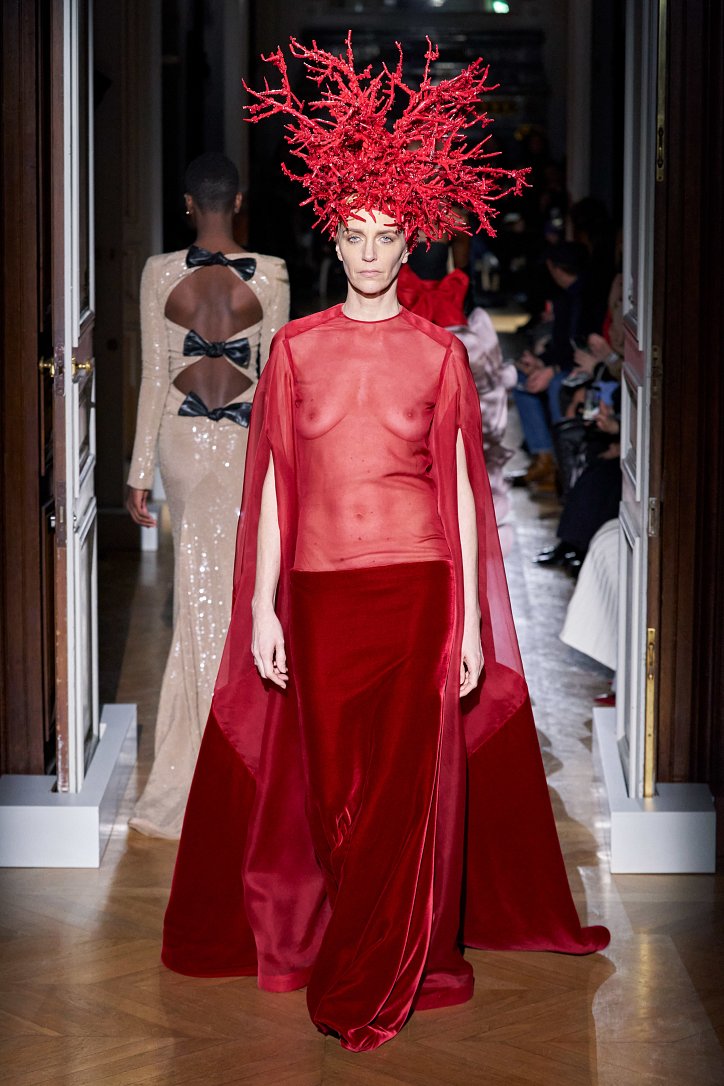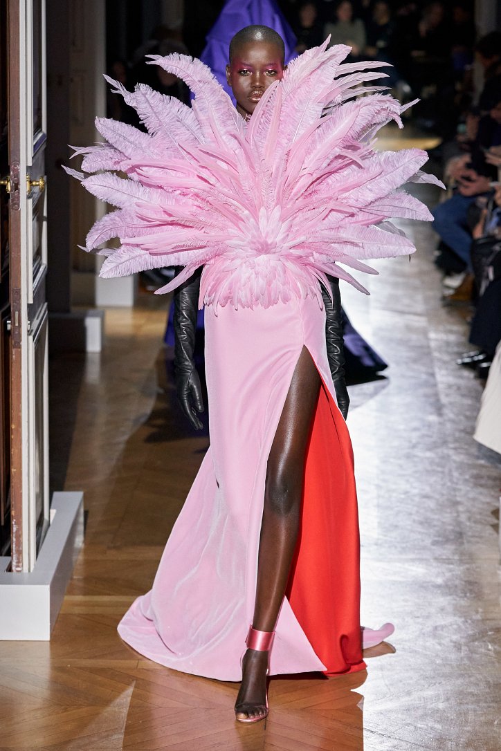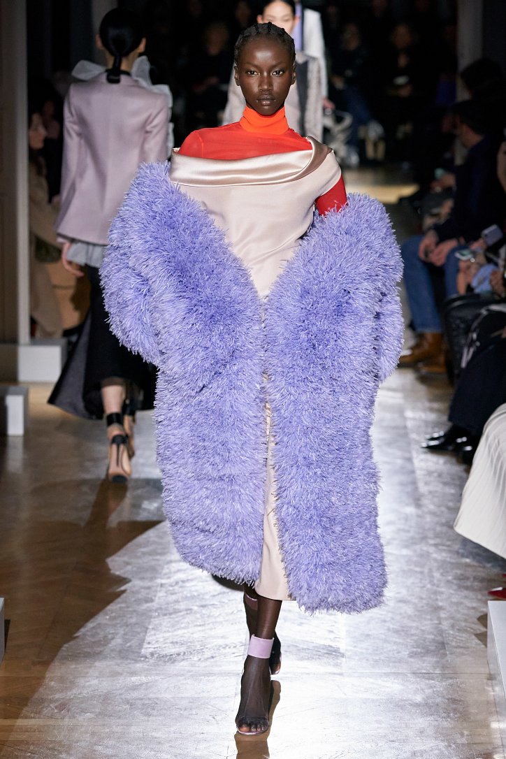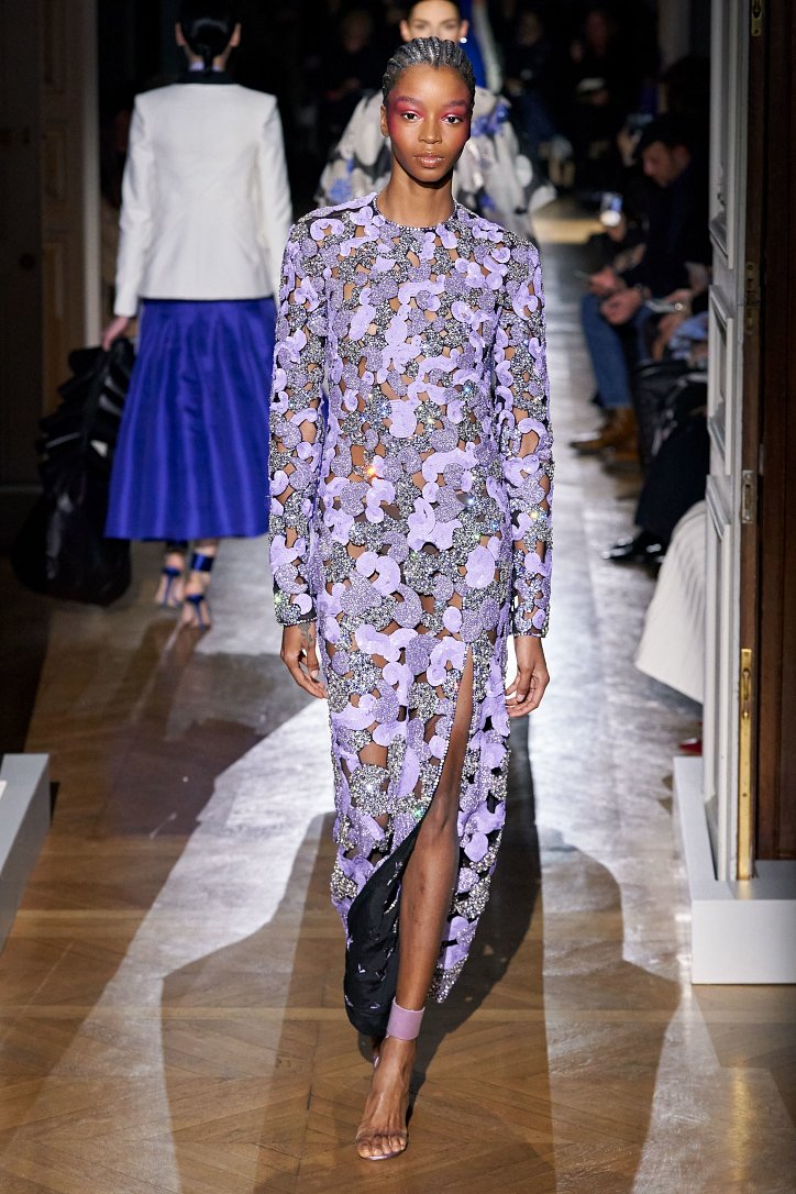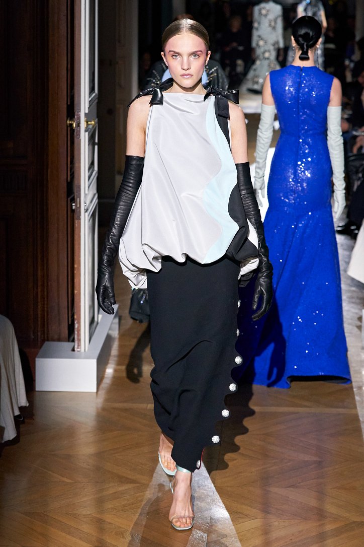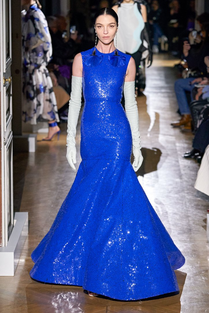 Пьерпаоло Пиччоли ищет новые силуэты. На смену уже привычными пышным платьям и объёмным силуэтам в новой коллекции Valentino пришли платья-русалки, напоминающие шаровары атласные брюки, длинные платья-бюстье с «монументальными» басками и модели с расклешенным низом. Но объем не исчез полностью – он просто изменил свою дислокацию. Пыщные банты на талии - в роли пояса, многочисленные воланы, полностью покрывающие юбку, объёмные топы, незаметно соединённые с пышными юбками – и все это в «фирменных» ярких цветах и принтах, которые уже стали визитной карточкой дома моды. Помимо главного цвета Valentino – красного – в палитру коллекции дизайнер включил оттенки фиолетового, шартрез, розовый, мятный, синий и, конечно же, черный и белый – свобода самовыражения «по Пиччоли» всегда окрашена в яркие и смелые краски.