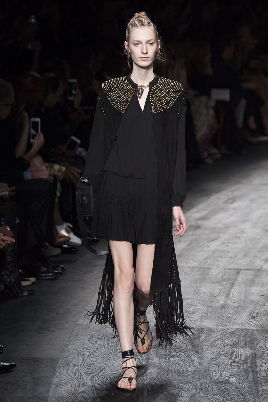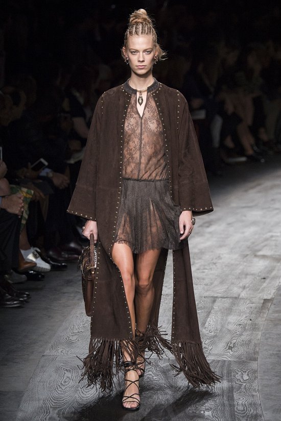 А «говорили» дизайнеры языком высококачественных материалов и удивительных принтов, которые могли бы стать иллюстрацией книги мифов и преданий Африки. Были в коллекции и невесомые блузки, и корсеты из кожи, и юбки с бахромой, но главная роль была отдана платьям – строгим и обольстительным, мини и макси, из прозрачного шифона и мягкой замши.