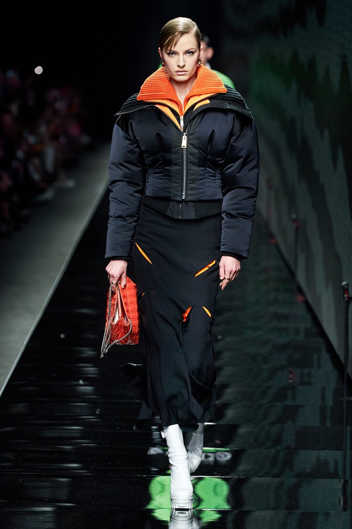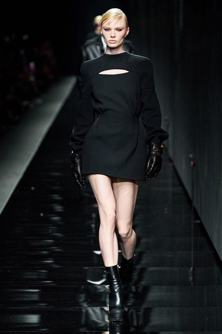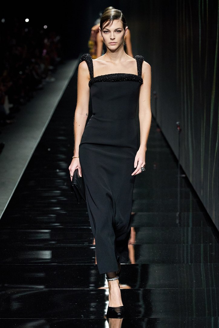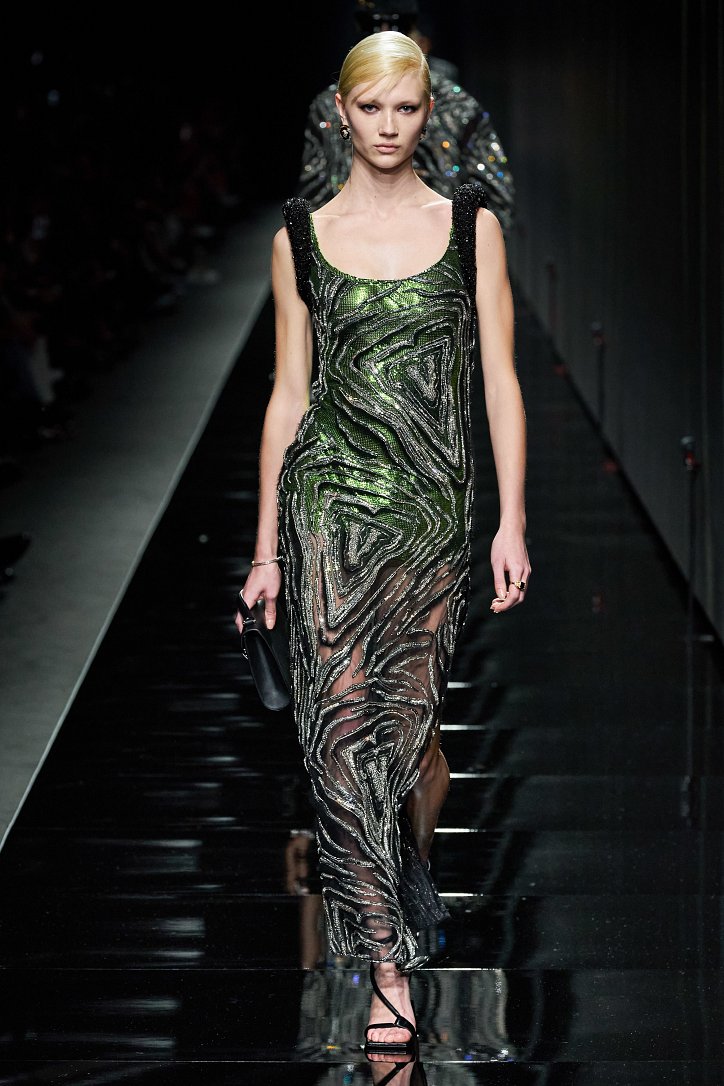 По сравнению с прошлыми сезонами, в новой коллекции было намного больше повседневной одежды – трикотажа, повседневных платьев, костюмов, жакетов, курток и пальто. Но блок вечерних нарядов был, как всегда, «главным событием» показа. Похожие на блестящие кольчуги мини- (или даже микро-) платья завораживали и блеском, и своей откровенностью.