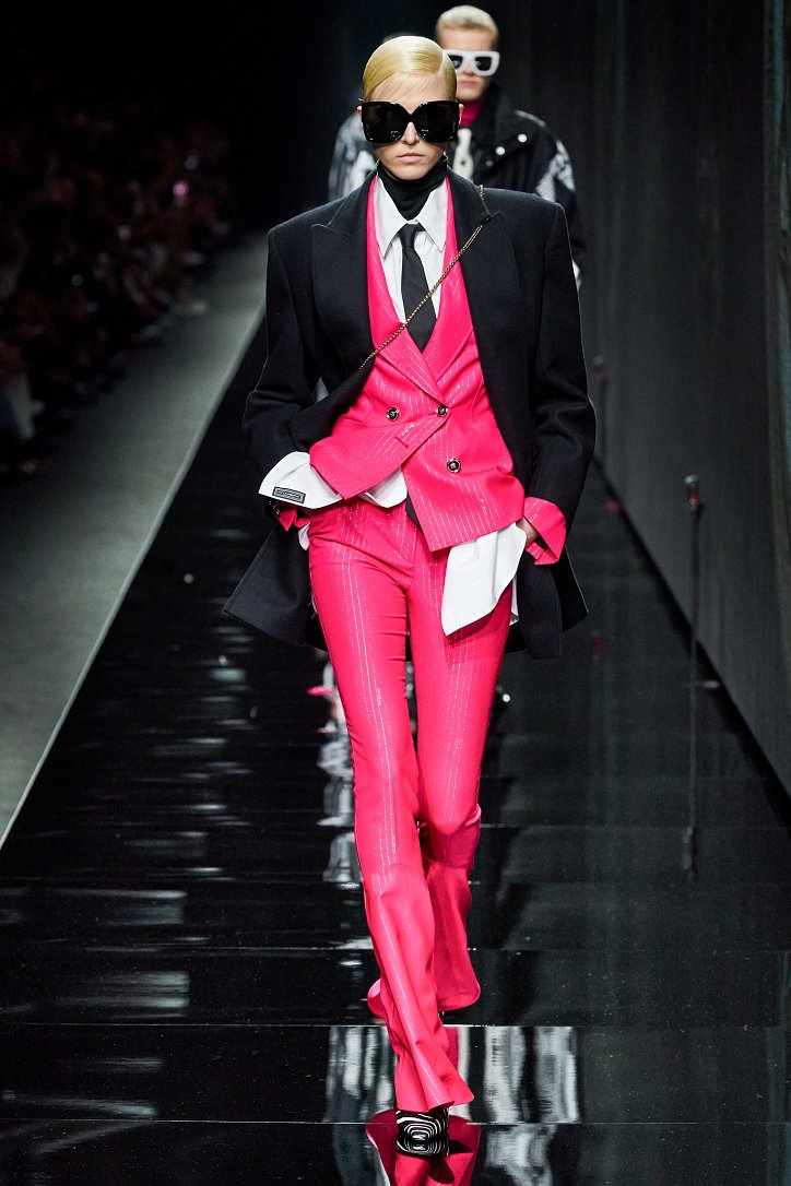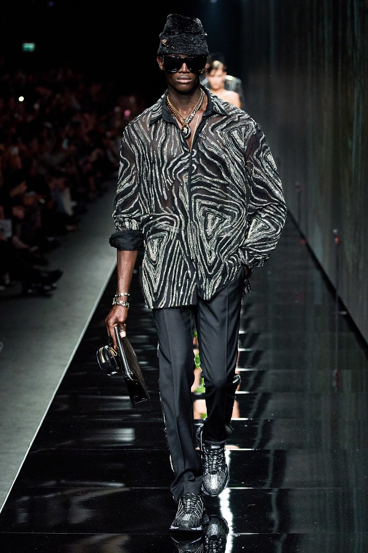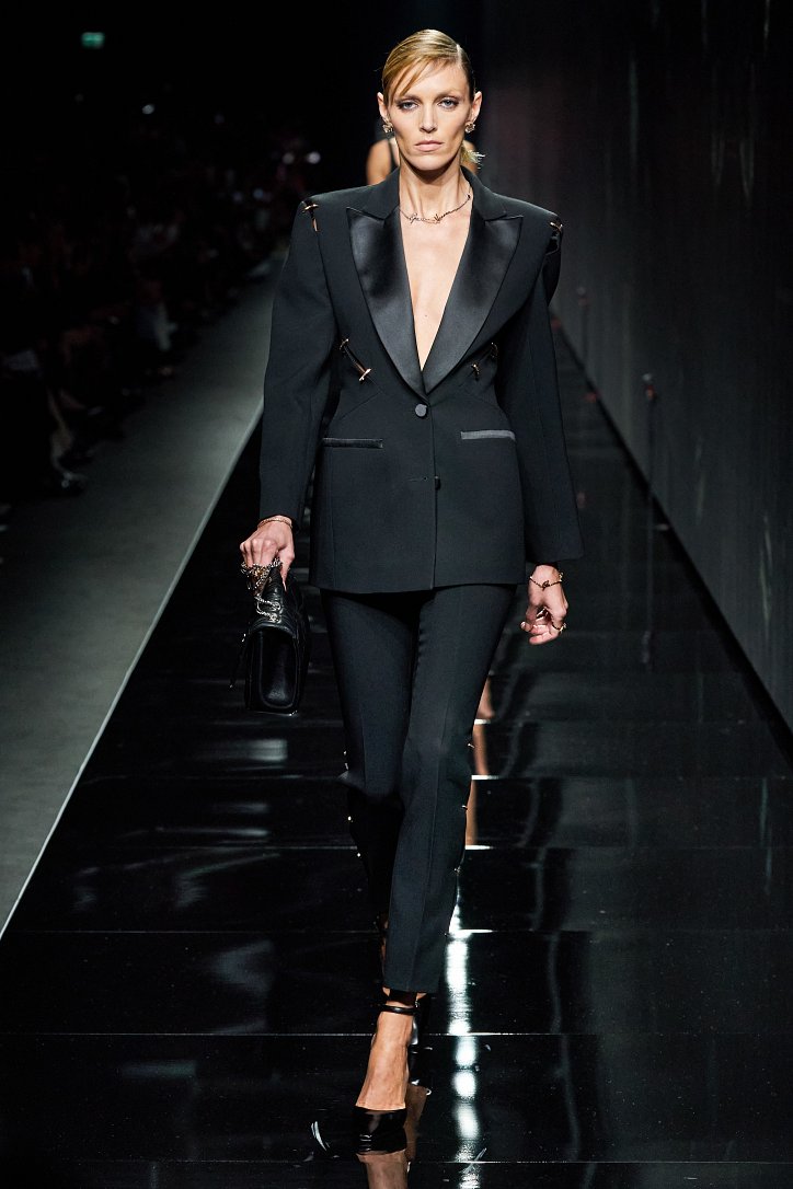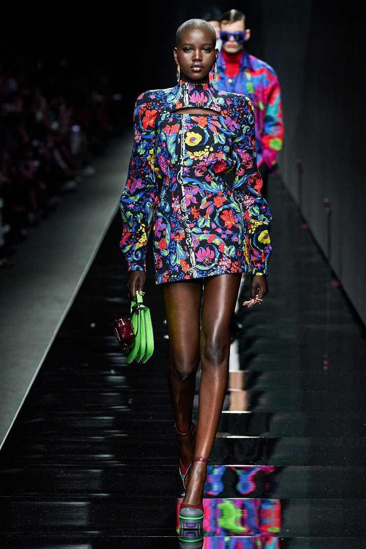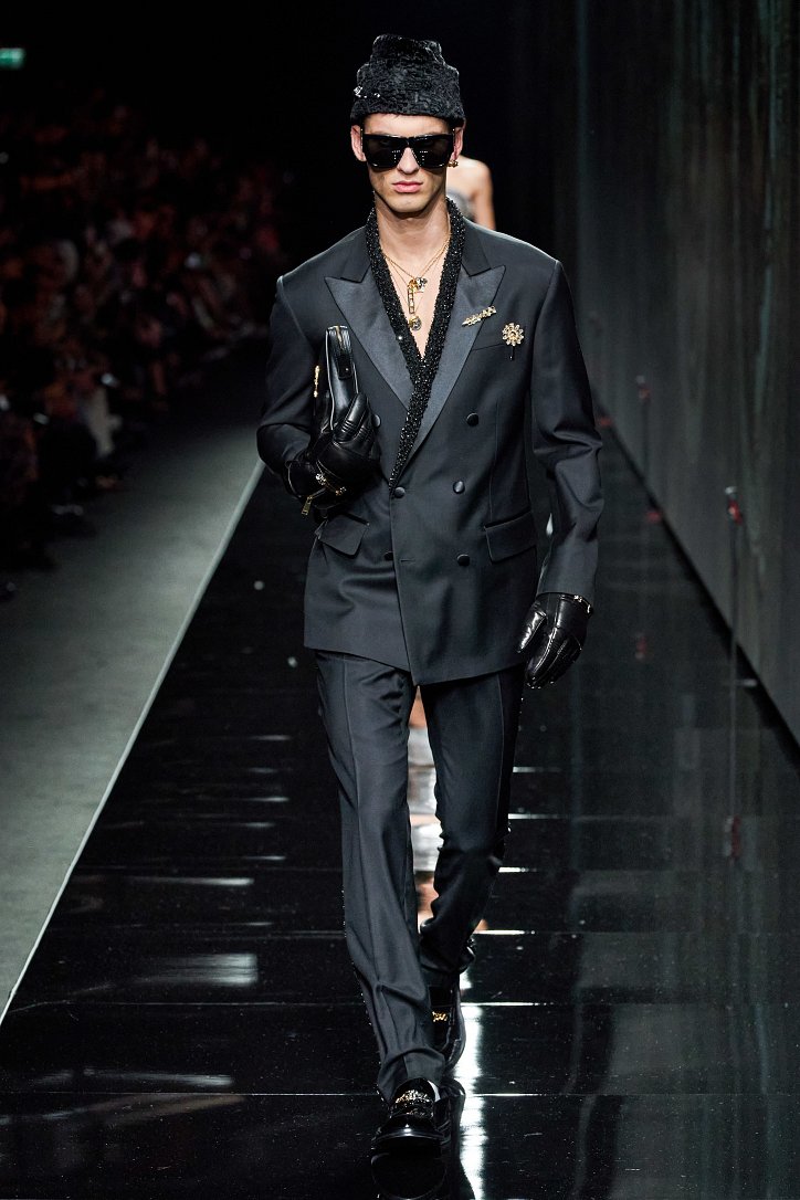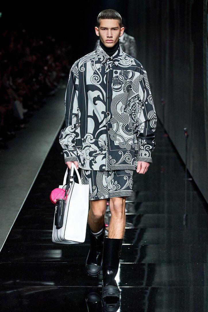 Новая коллекция Versace демонстрирует гендерное равенство и равноправие. Донателла Версаче не только впервые в истории дома моды объединила женскую и мужскую коллекции, но и визуально сделала обе линейки очень похожими – за счет одинаковых тканей, принтов и цветов. Но самым интересным была двойственность самой одежды: женская линейка включала как откровенно сексуальные мини-юбки и ультракороткие платьица, так и маскулинные жакеты и костюмы.