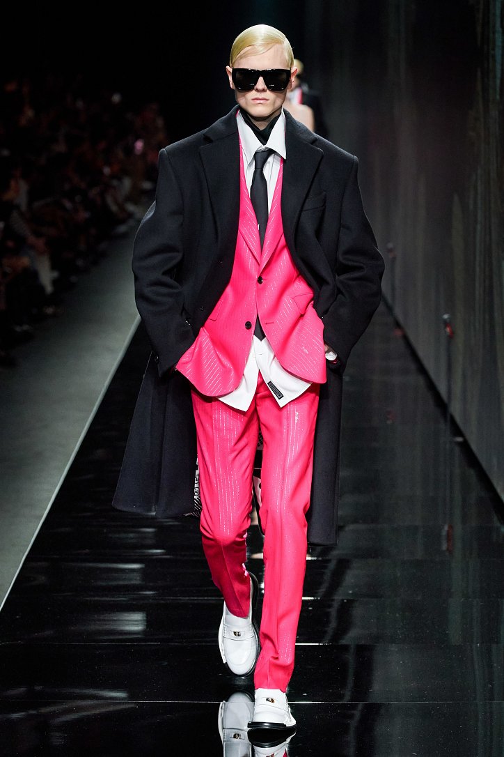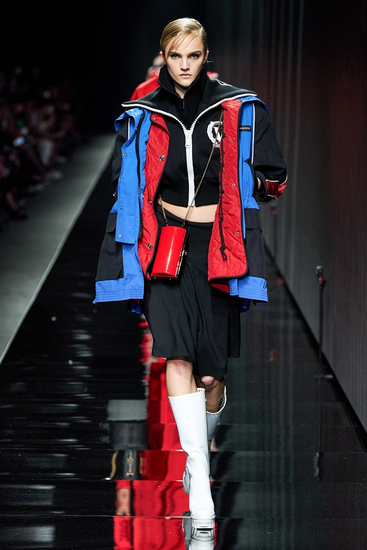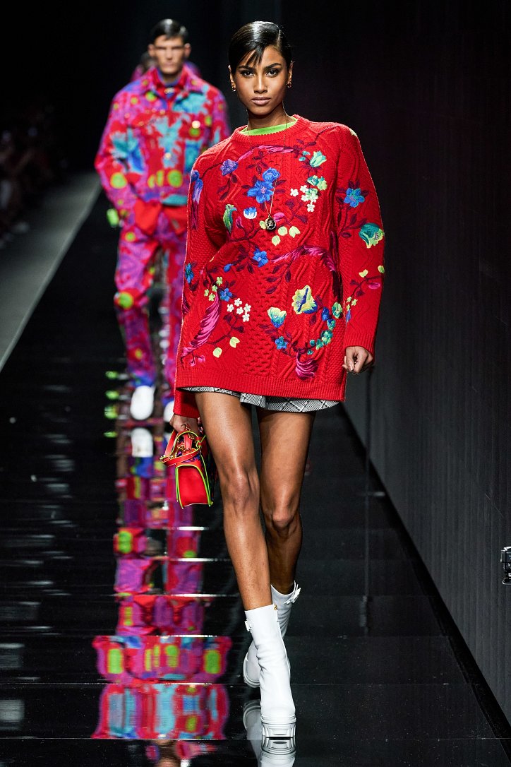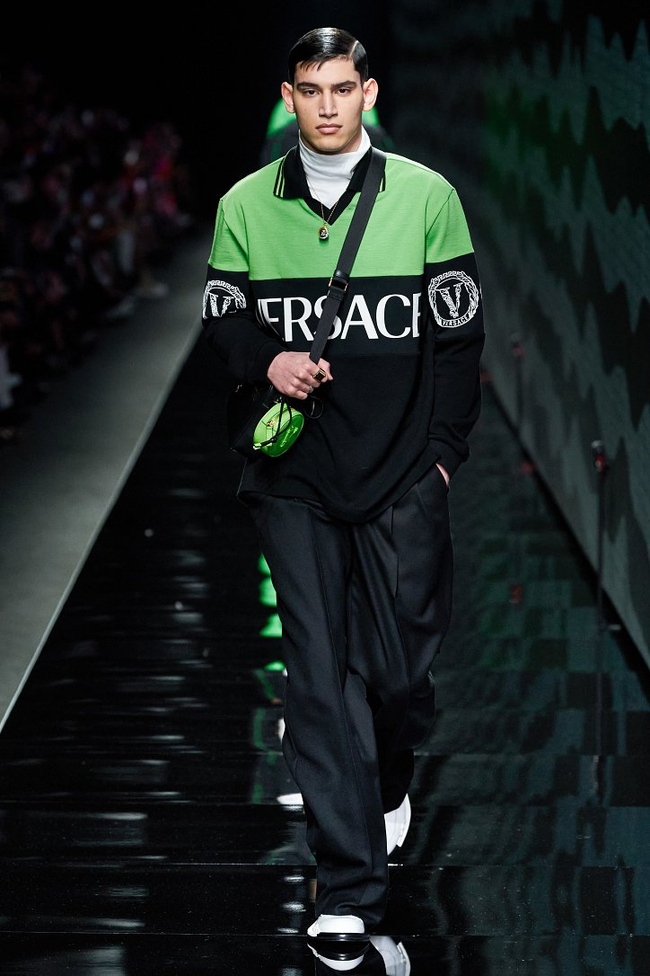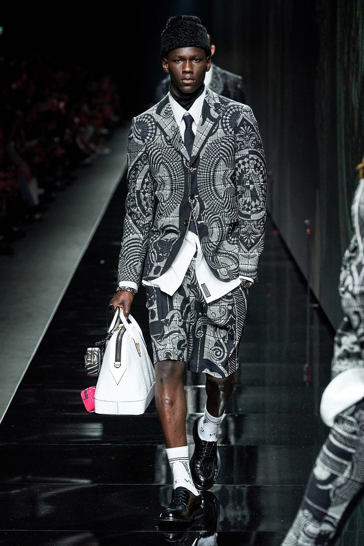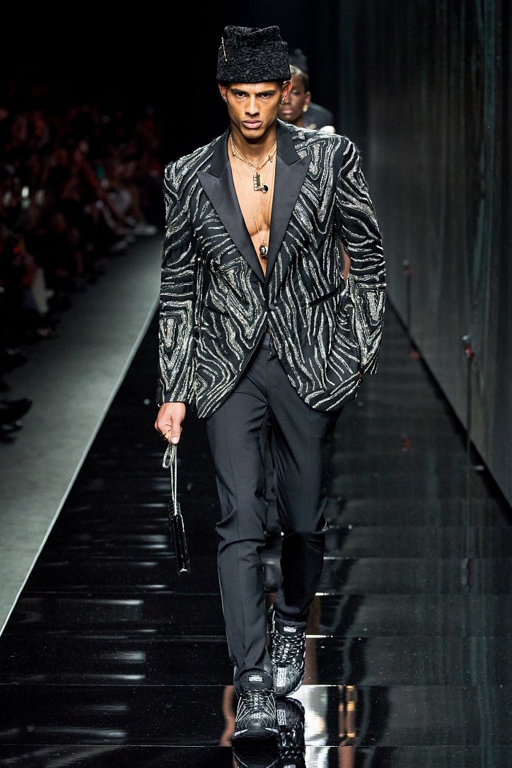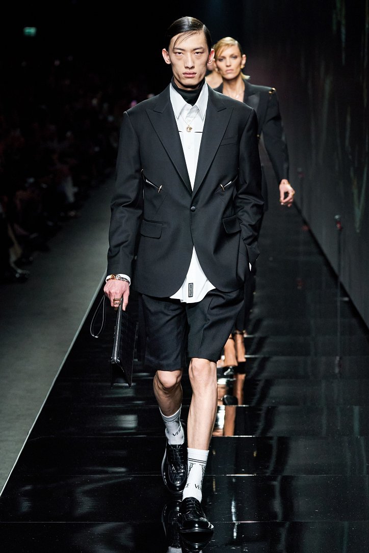 Новая коллекция Versace демонстрирует гендерное равенство и равноправие. Донателла Версаче не только впервые в истории дома моды объединила женскую и мужскую коллекции, но и визуально сделала обе линейки очень похожими – за счет одинаковых тканей, принтов и цветов. Но самым интересным была двойственность самой одежды: женская линейка включала как откровенно сексуальные мини-юбки и ультракороткие платьица, так и маскулинные жакеты и костюмы.