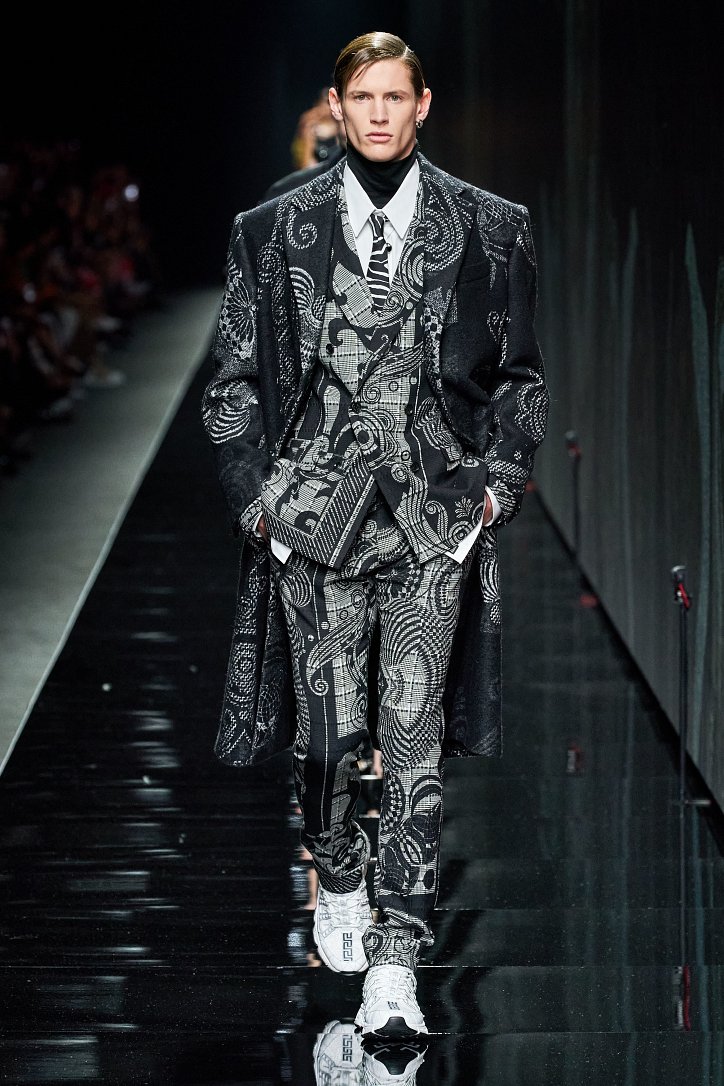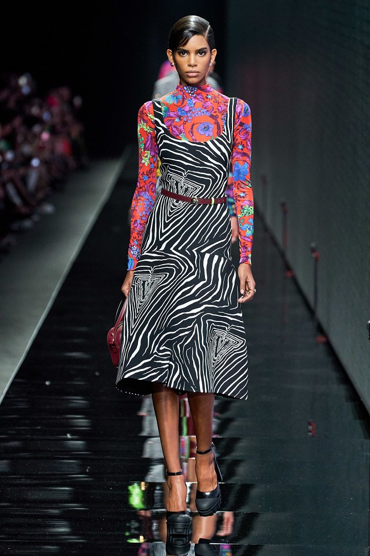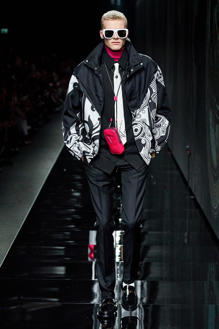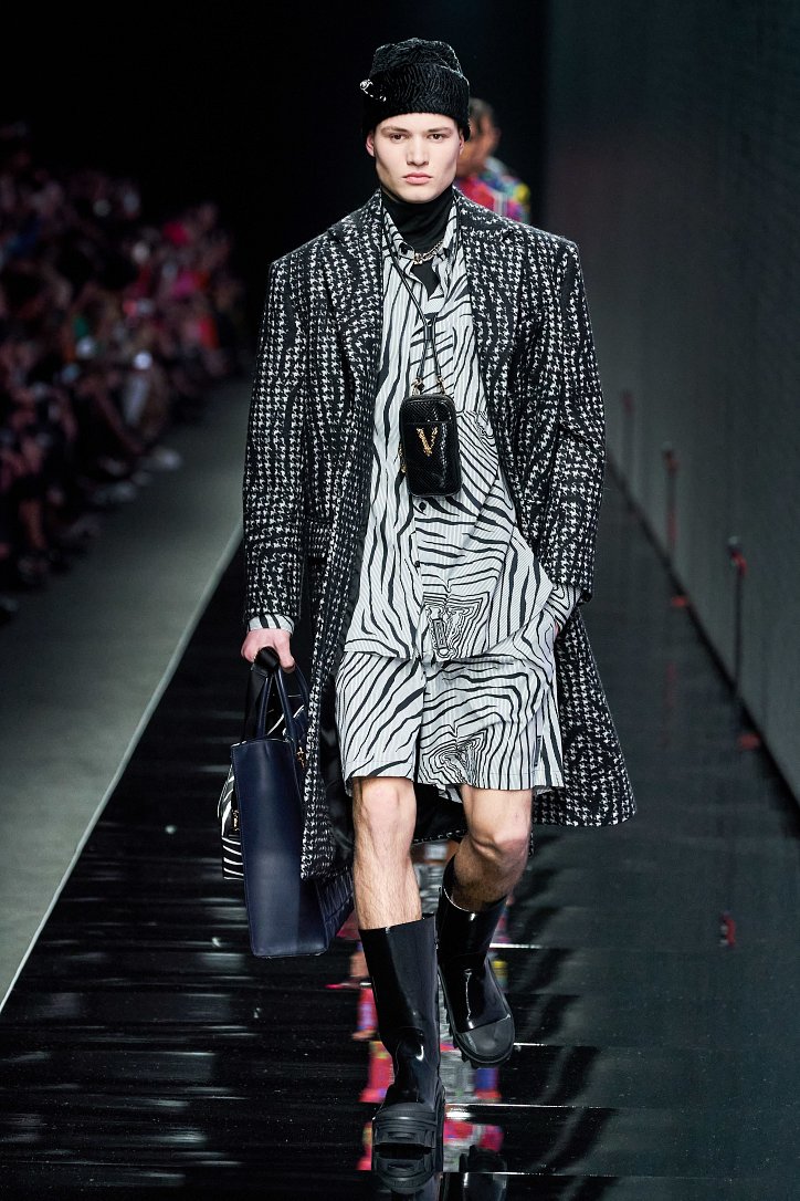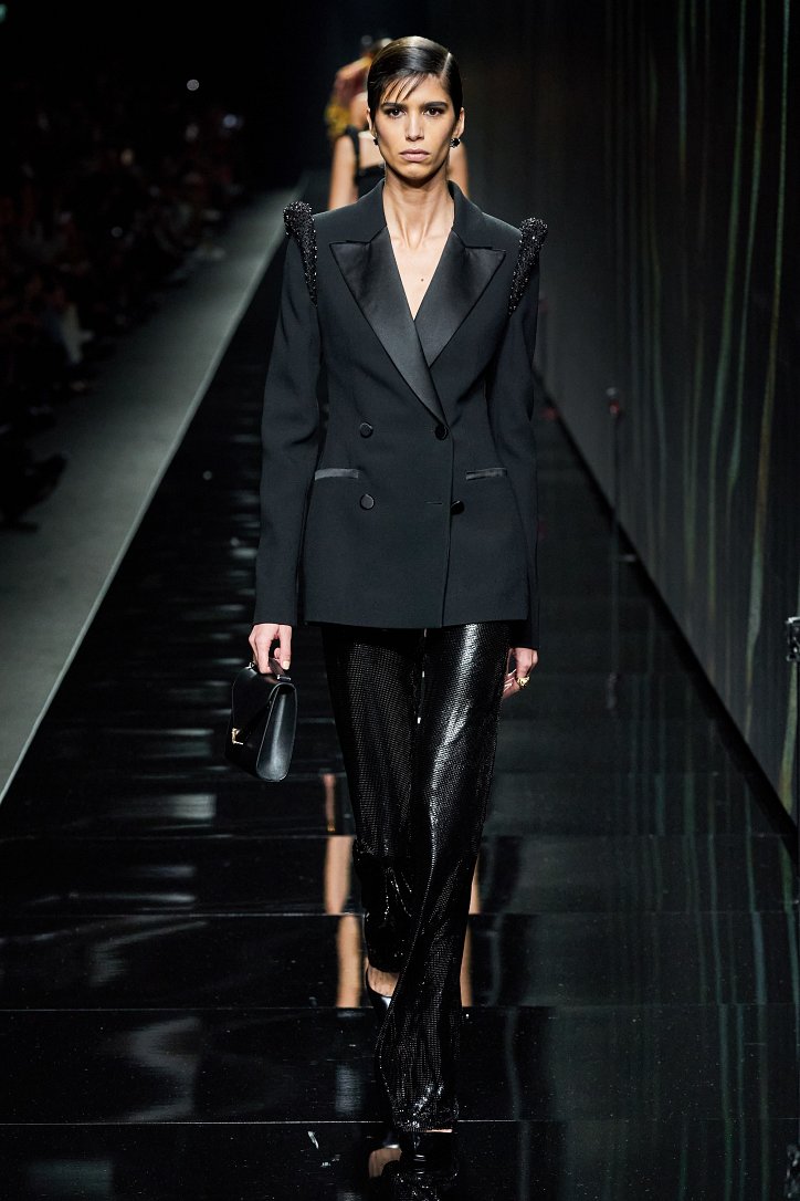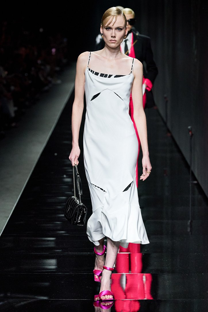 Новая коллекция Versace демонстрирует гендерное равенство и равноправие. Донателла Версаче не только впервые в истории дома моды объединила женскую и мужскую коллекции, но и визуально сделала обе линейки очень похожими – за счет одинаковых тканей, принтов и цветов. Но самым интересным была двойственность самой одежды: женская линейка включала как откровенно сексуальные мини-юбки и ультракороткие платьица, так и маскулинные жакеты и костюмы.
