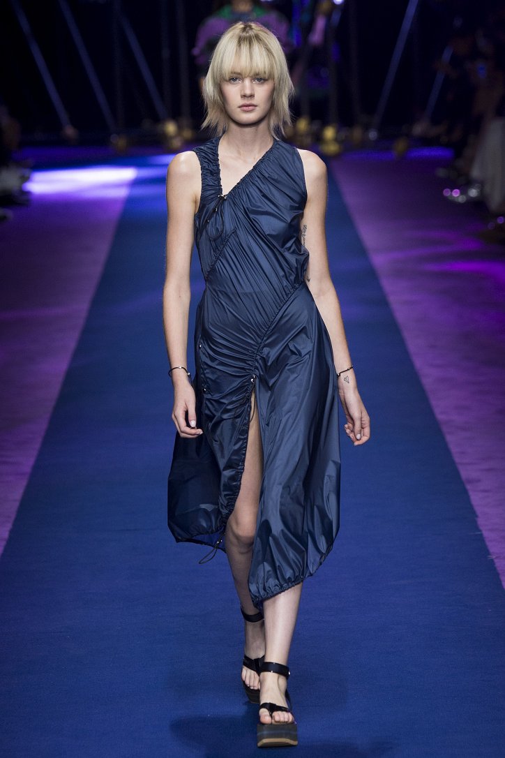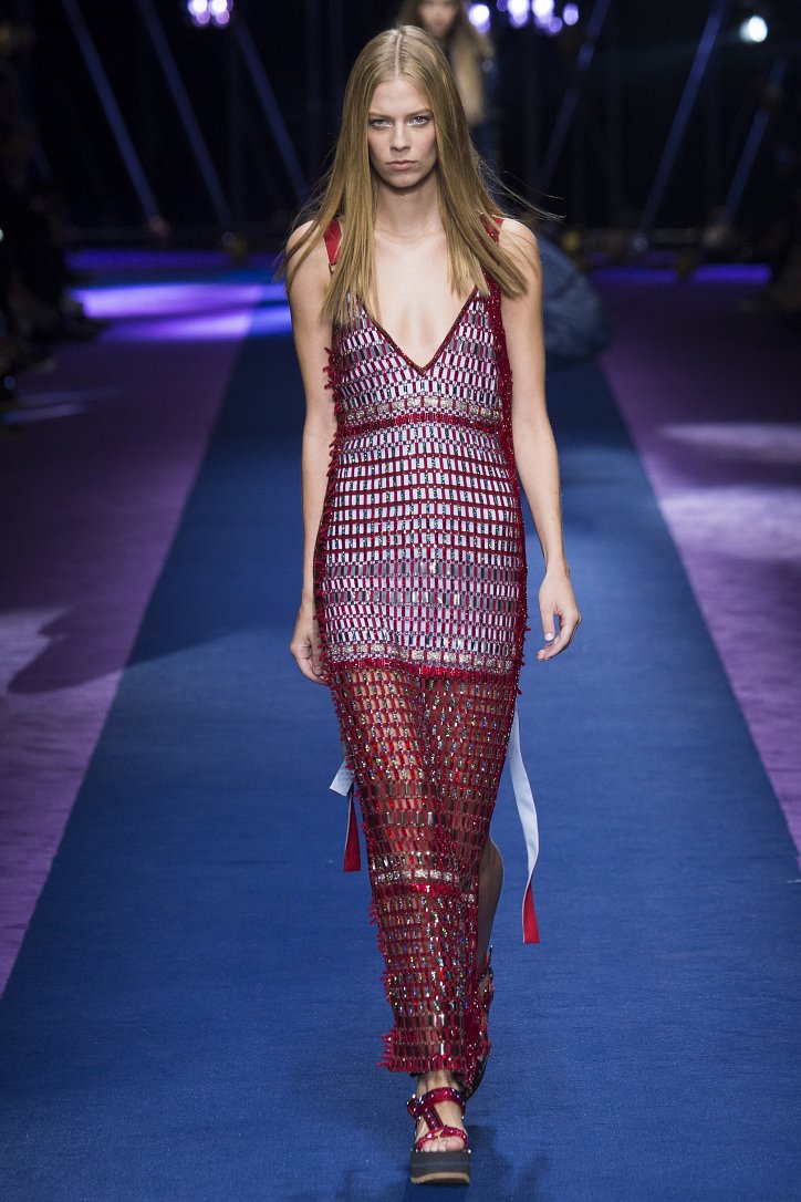 Любимую тему искусства соблазнения Донателла Версаче решила исполнить «на новый лад». Как высказалась по этому поводу дизайнер, коллекция Versace весна-лето 2017 посвящена женской свободе, которая заключается как в свободе движений, так и свободе быть собой, отстаивать свое мнение, свои идеи. А для этого, по всей вероятности, необходимо облачиться в эротически-спортивную одежду: облегающие комбинезоны, не менее облегающие платья и брюки, модные куртки-бомберы, длинные летящие парки, кроп-топы, юбки с высокими разрезами.
