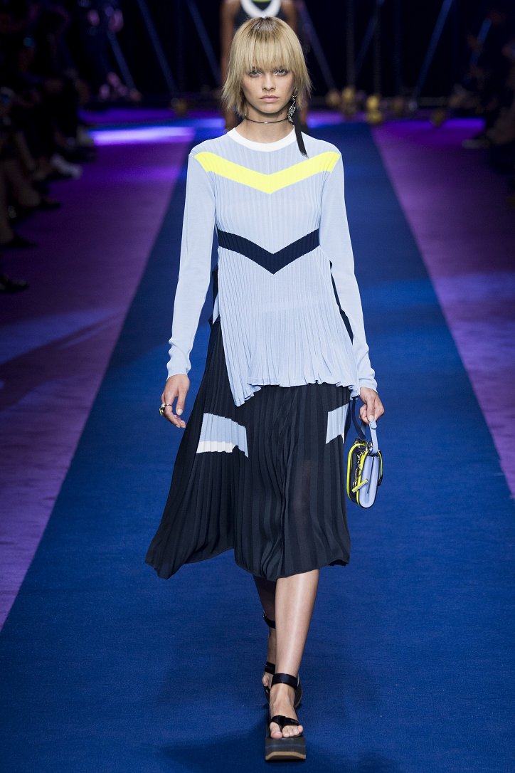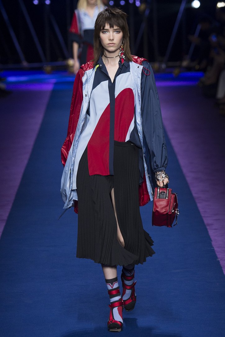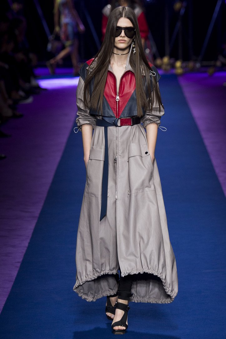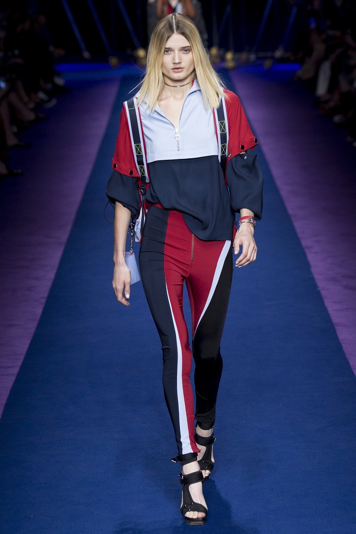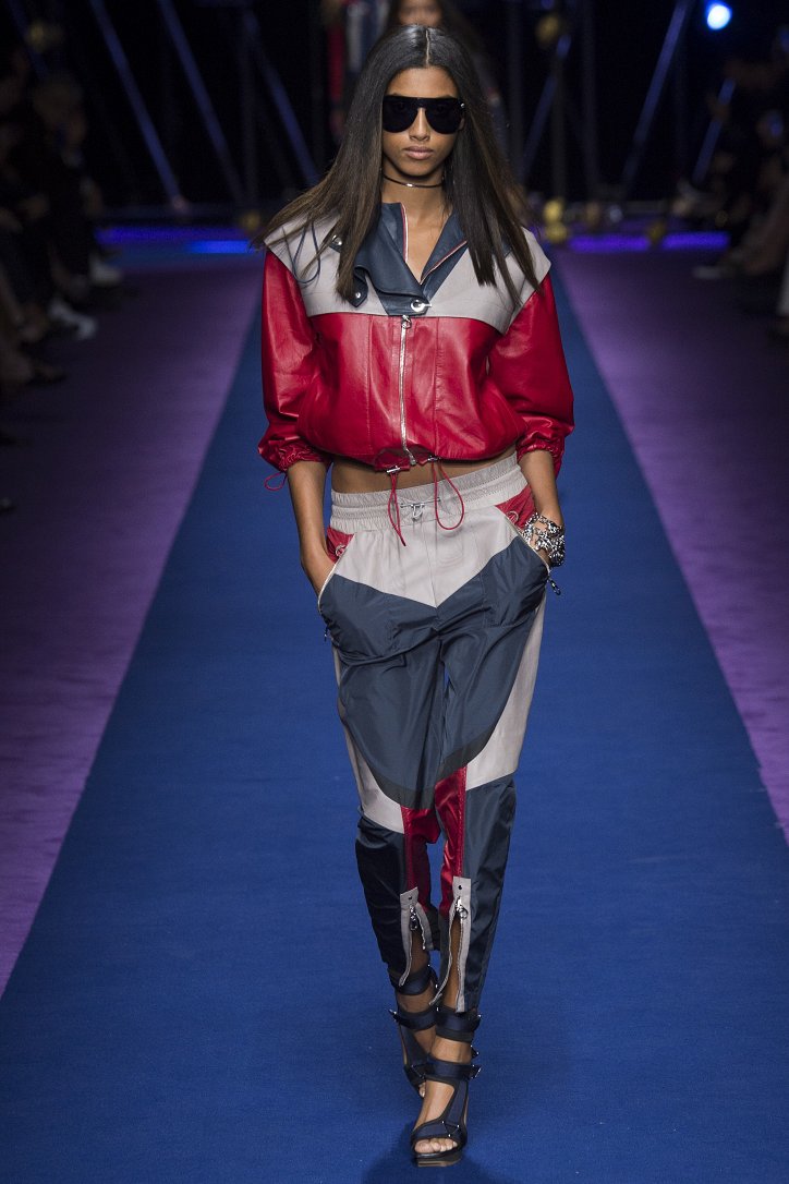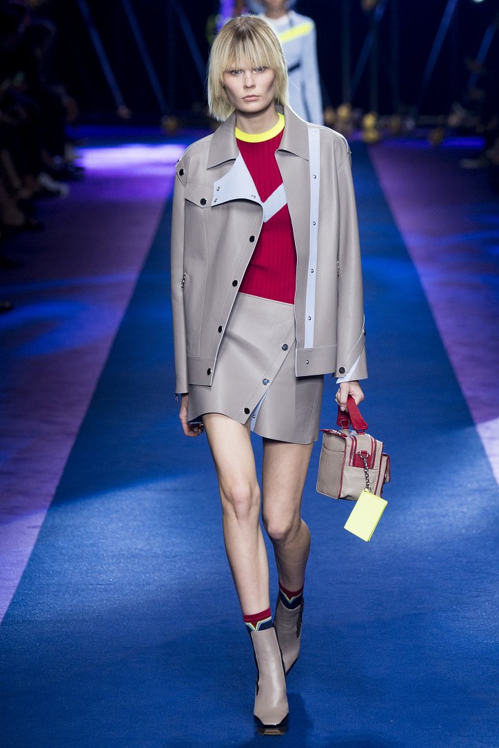 Основным декоративным приемом стали цветовые блоки, которыми дизайнер украсила буквально все – от кожаных курток до мини-платьев, сплошь покрытых блестящими пайетками.