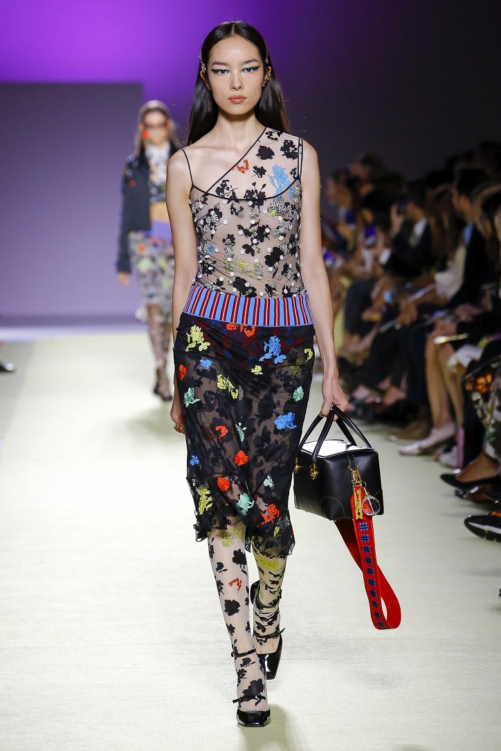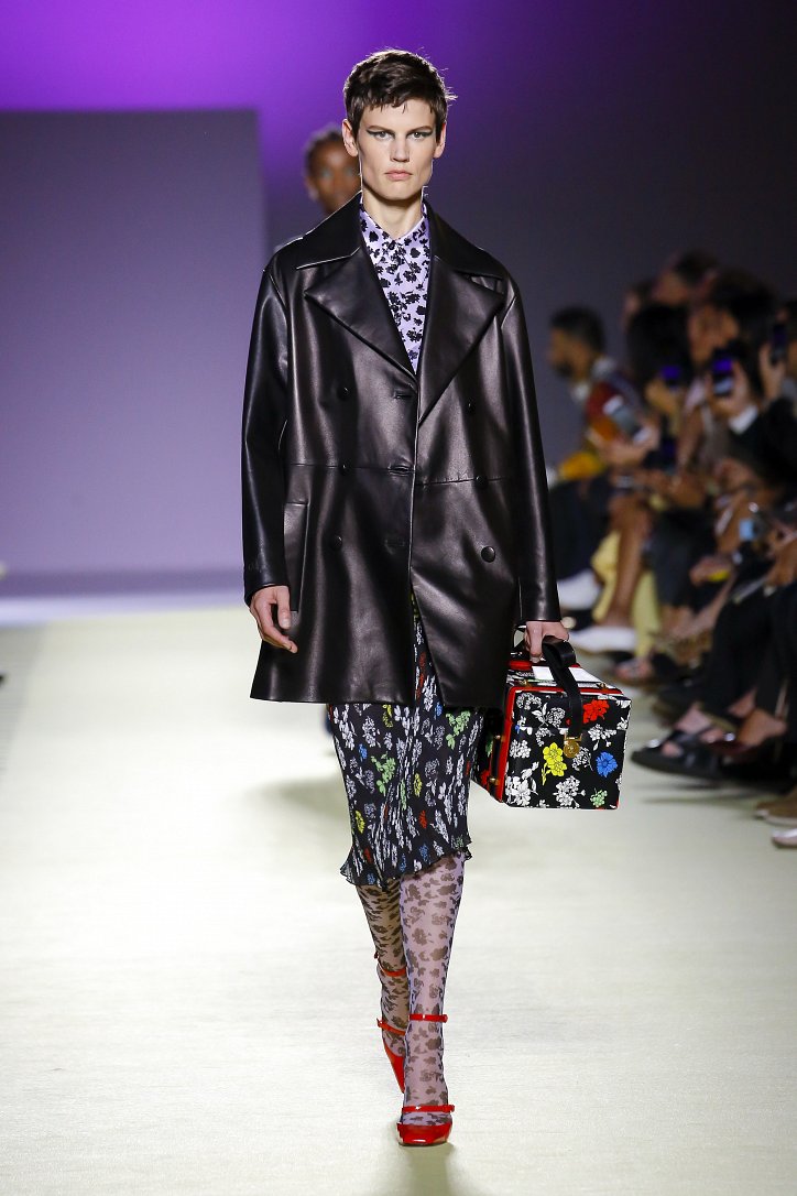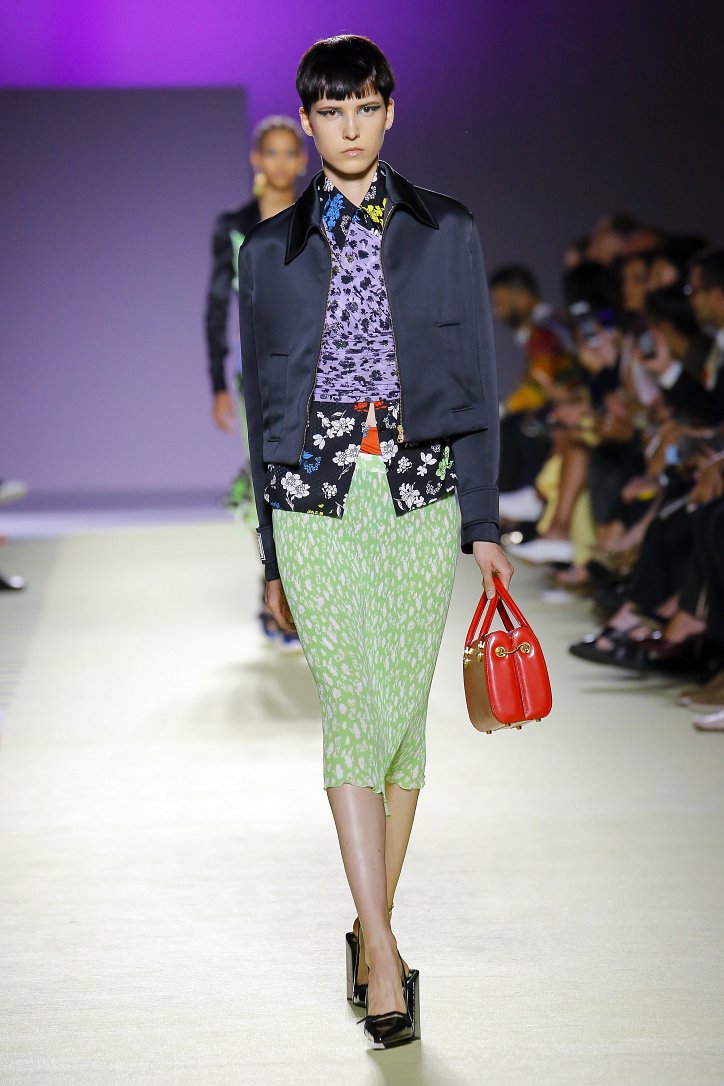 Такой же «разнокалиберной» была и сама коллекция: в ней были и мелкие цветочные принты, и кружева, и микрошорты, и атласные жакеты, и виниловые юбки-карандаши, и кислотного цвета кожа, и платья в бельевом стиле.
