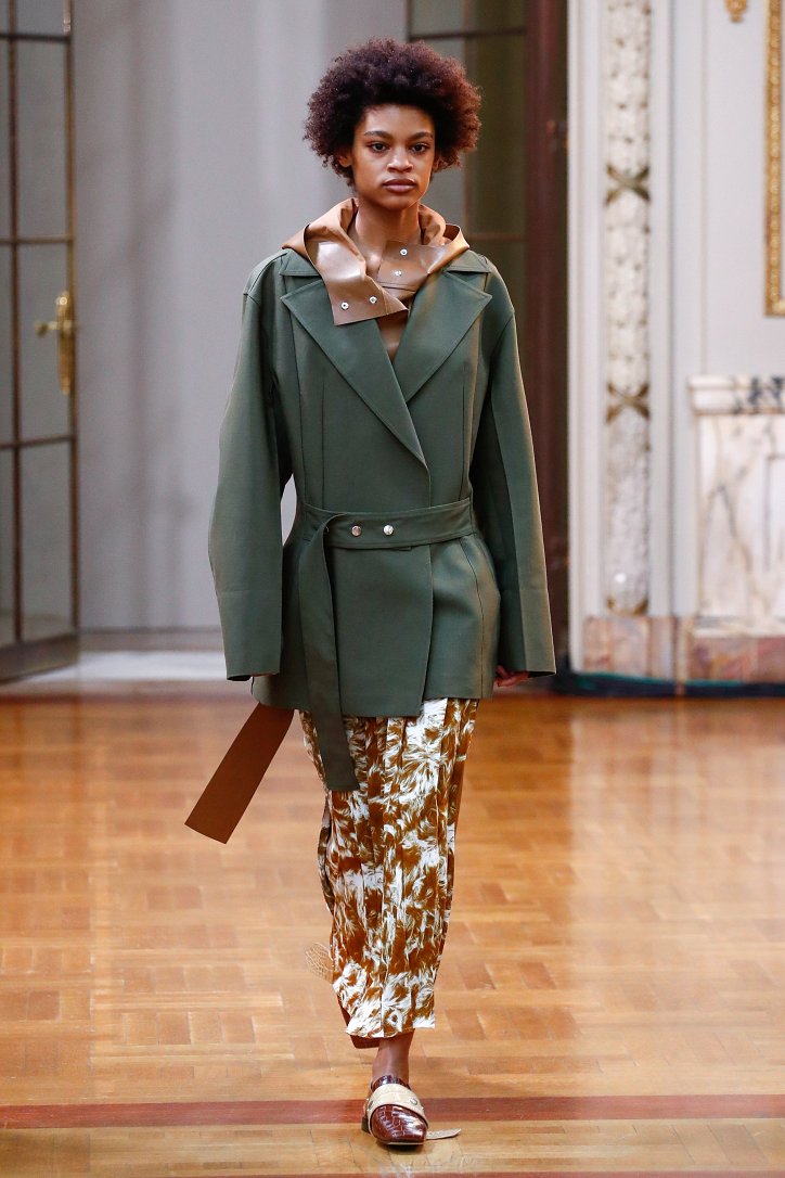 Оверсайз и милитари стали главными темами первой юбилейной коллекции Victoria Beckham осень-зима 2018-2019 (в этом году исполнилось ровно 10 лет с тех пор, как Виктория Бекхэм дебютировала в качестве дизайнера). За это время эстетика бренда изменилась до неузнаваемости, пройдя путь от облегающих платьев-футляров из джерси до неоконструктивизма.