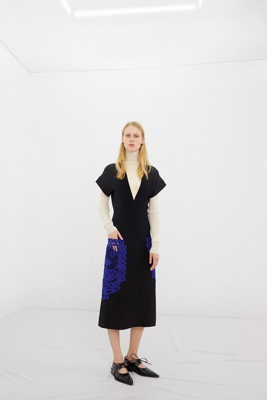 Не упустила шанса дизайнер поиграть и с цветами: черный и белый великолепно уживаются в коллекции с ярко-желтым, синим и оттенком фуксии, которые миксуются как в виде отдельных элементов гардероба, так и в качестве деталей или отделки.