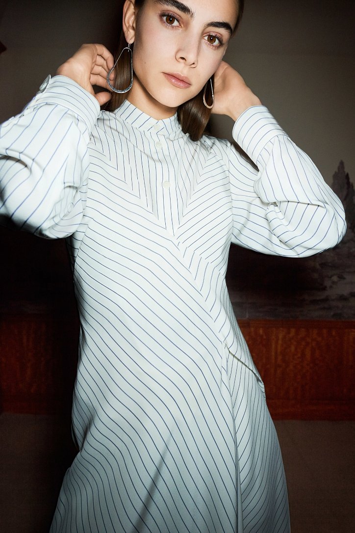 Что же она носит сегодня, и что предлагает примерить модницам завтра? Длинные платья и брюки, пальто свободного кроя и юбку-миди, водолазки и свитеры, шерстяные жакеты и меховые сумки. А еще дизайнеру пришлись по вкусу сочетания принтов, многослойность и женственные силуэты. И, конечно же, нельзя не отметить цветовую гамму коллекции, которая радует изысканным минималистичным общим фоном, свежими игривыми нотками ярких и пастельных оттенков и их оригинальными комбинациями.